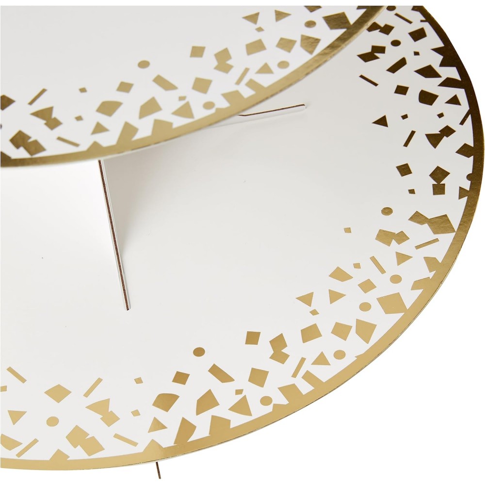 Mostra i tuoi cupcakes in uno stile affascinante con questo supporto per cupcake con disegni in lamina d'oro. Dotato di 2 livelli di cartoncino stampato, questo albero di cupcake è un modo delizioso per esporre cupcakes e focacce a un baby shower, una festa di compleanno o una celebrazione dell'anniversario. Questo supporto per cupcake a 2 livelli può contenere 12 cupcake di dimensioni normali una volta assemblato.