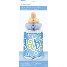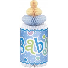 Centrotavola biberon a Nido d'Ape "Baby Shower" Bimbo - Azzurro