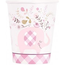 Bicchieri di Carta Elefante Rosa 266 ml - Nascita e Battesimo - Cf. 8