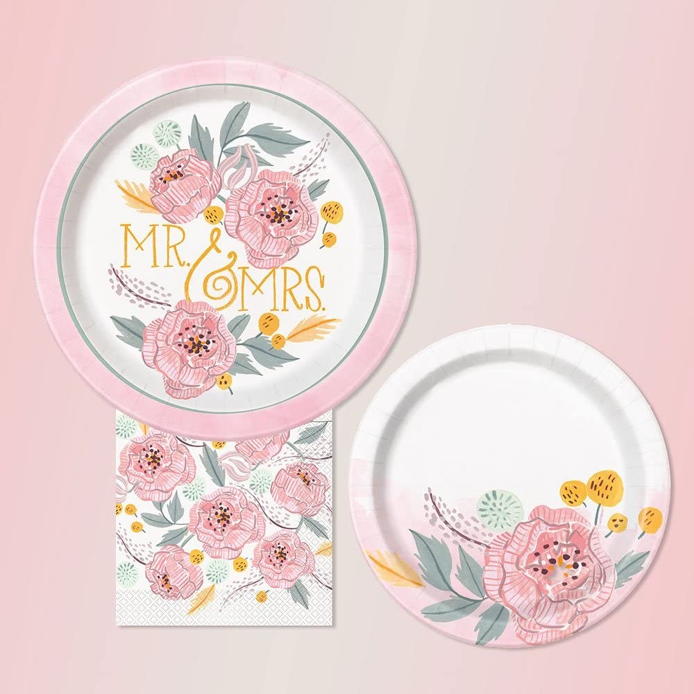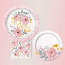 Imposta la tua tavola per il rinfresco post Cerimonia di Nozze utilizzando questo splendido set di piatti usa e getta in maniera tale da ottimizzare i tempi nel giorno più importante per una coppia, l'utilità di questi piatti la noterete solo nel momento in cui ci sarà il momento di passare alla pulizia. Presentati di colore rosa, i piatti di carta presentano al centro la stampa di un bellissimo fiore che abbinato ai piatti di entrata "Mr & Mrs" andrà a creare un perfetto equilibrio nei colori e nelle decorazioni scelte all'insegna della grazia e della finezza, perfetti dunque in vista del Matrimonio.
