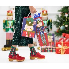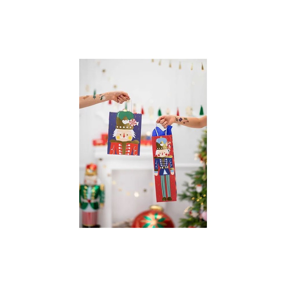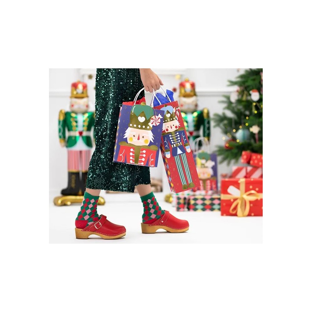 Sacchetto regalo Schiaccianoci di Natale in colore rosso con stampa metallizzata colorata e dorata