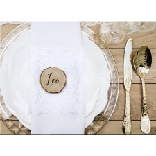Ottimo ornamento utile al completamento della propria tavola in vista di una grande cerimonia, grazie a questi segnaposto, le vostre tavole saranno già pronte per gli invitati nel momento dell'arrivo al ricevimento e andranno a dare un tocco elegante, sobrio ma soprattutto eco friendly visto il materiale utilizzato, il legno. L'accessorio sarà personalizzabile in maniera tale da poter scrivere il nome diretto dell'invitato o anche per poter lasciare un messaggio, pensiero o ricordo da lasciare ai presenti.