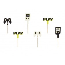Pick in legno ,Cupcake toppersTema videogiochi, gamercf da 6 pezziMisura : 6- 10,5 cm