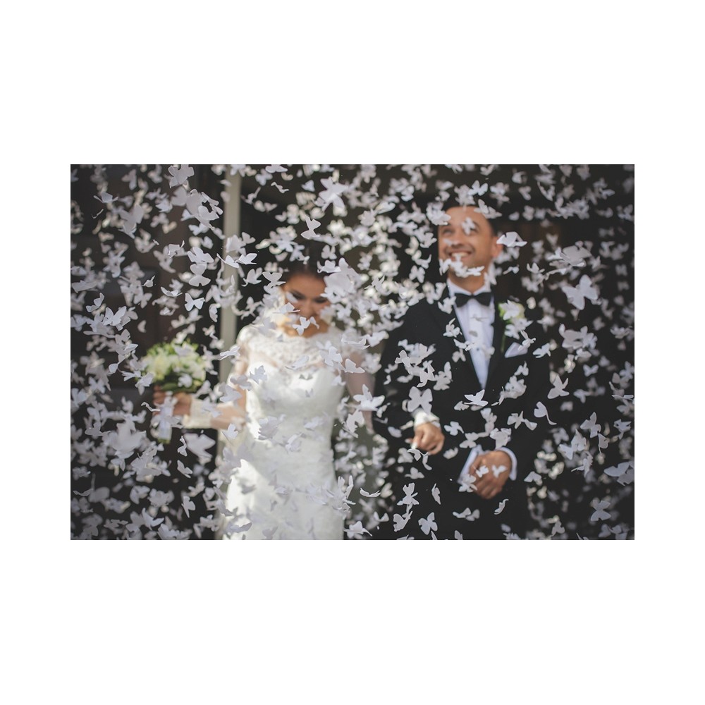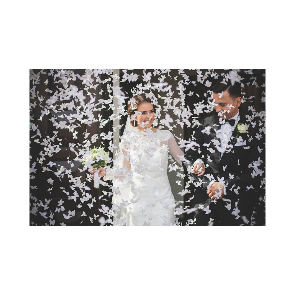 Cerchi una valida e originale alternativa al riso per sposi per rendere ancora più indimenticabile il matrimonio? Questo speciale tubo sparacoriandoli è quello che fa per te! Basta ruotare la base e libererai mille farfalle bianche, che fluttueranno attorno ai novelli sposi ed emozieranno tutti gli invitati!