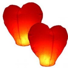 2 Lanterne Cinesi Volanti a forma di Cuore Rosso