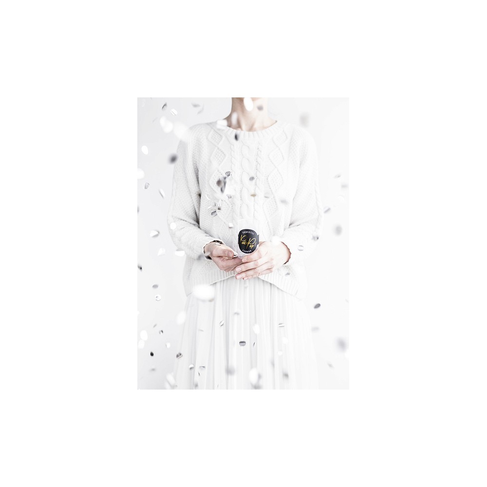 Per mettere in uso questo articolo basterà semplicemente spingere verso l'alto il manico in plastica del contenitore, a questo punto una cascata di coriandoli argentati che creeranno un effetto luccicante attorno al festeggiato.