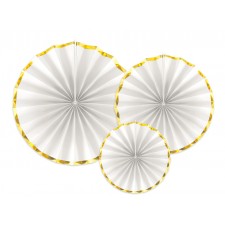 Ruote carta Decorazioni a Ventaglio bianco e oro da Appendere Casa, festoni, addobbicf da 3 pezzi
