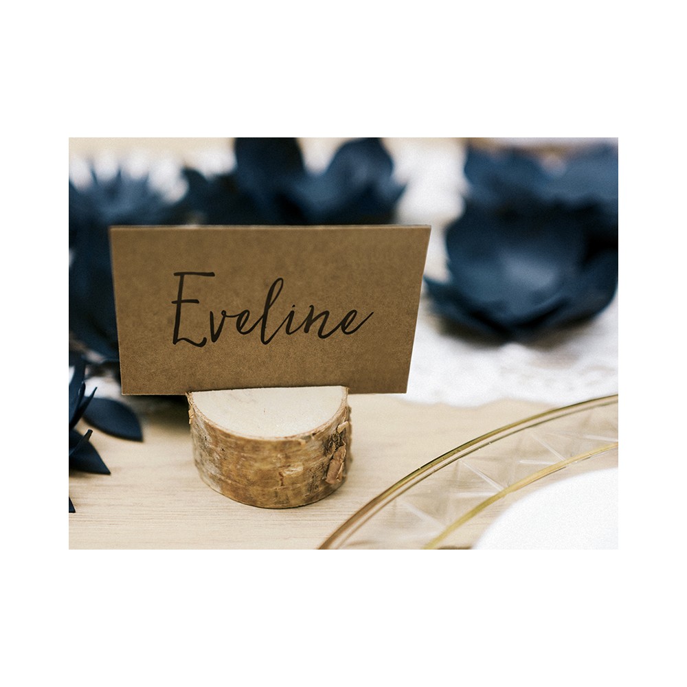 I cartellini (non inclusi) con il nome potranno essere infilati nel solco di questi segnaposti in legno di modo che, una volta assemblati, possano essere posti sul giusto piatto in cui pranzerà l'invitato indicato sul cartoncino.