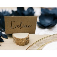 Segnaposti di legno con taglio per sorreggere cartoncino con nome