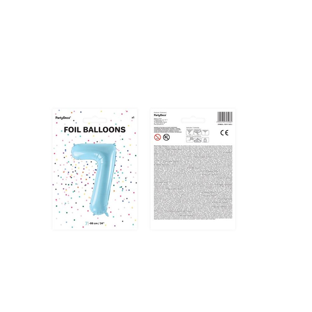 Palloncino Mylar a Forma di Numero 7 Azzurro 86 cm