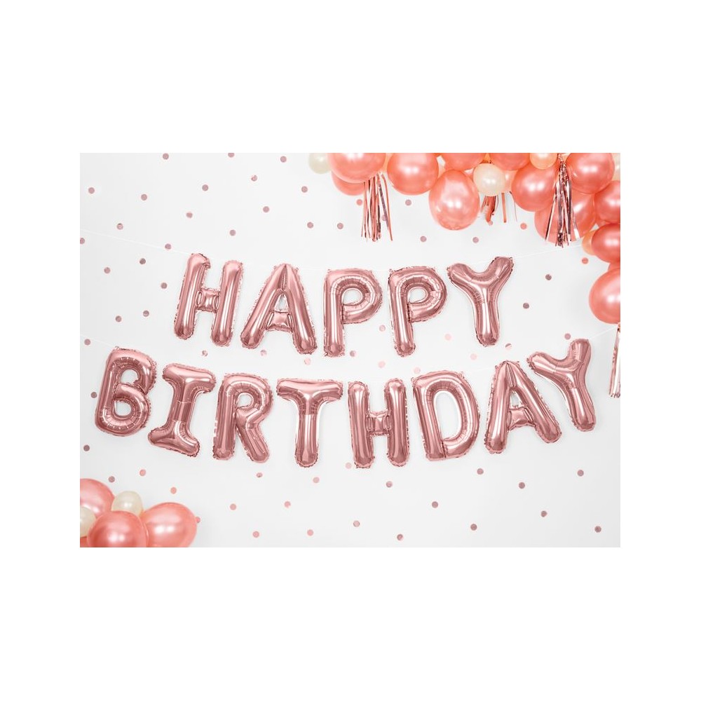 Set lettere gonfiabili Mylar rosa gold cipria Scritta HAPPY BIRTHDAY ogni lettera 35 cmcf da 1 set completo