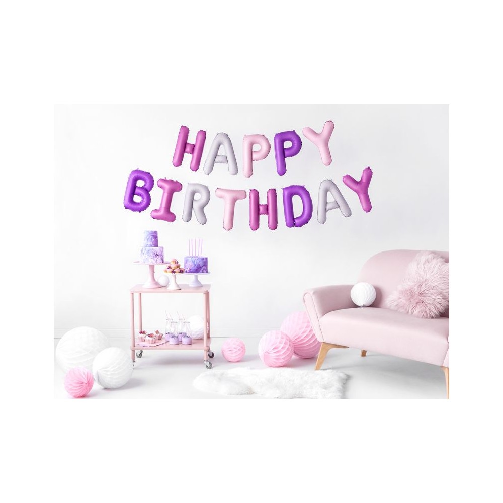 Set lettere gonfiabili Mylar rosa viola e argento Scritta HAPPY BIRTHDAY ogni lettera 35 cmcf da 1 set completo