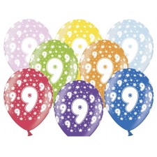 Palloncini Lattice Ecologici numero 9 , nove anni compleannocf da 6 pezzi assortiti