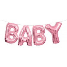 Set Palloncini Mylar a forma di scritta "BABY" con filo, 35.5 x 274 cm, Rosa Metallizzato