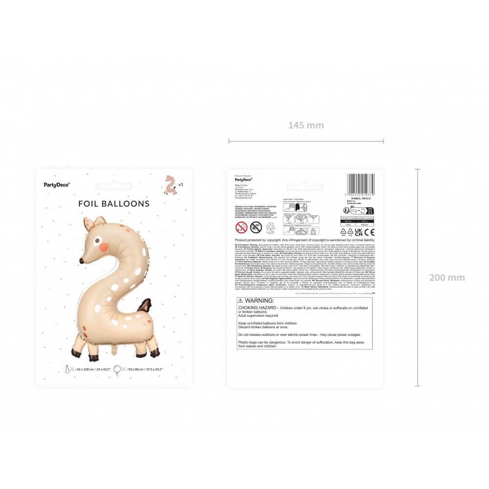 Usalo insieme agli altri numeri in per comporre l'età del festeggiato in modo animalesco con il simpatico cerbiatto o la data dell'evento speciale, rendi unica la tua festa! Vista la forma, sagomata a numero "2" sarà perfetto per l'assemblaggio con un altro palloncino dello stesso stile.