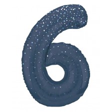 Palloncino Foil Numero 6, Sei,Blu Brillantinato, 86 cm