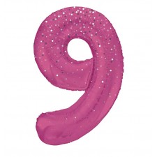 Palloncino Foil Numero 9, Nove,Fucsia Brillantinato, 86 cm