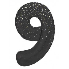 Palloncino Foil Numero 9, Nove,Nero Brillantinato, 86 cm