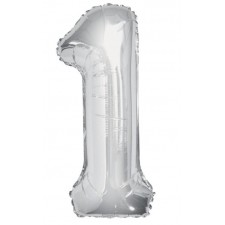 Palloncino Foil Numero 1, Uno,Argento, 86 cm