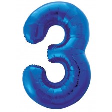 Palloncino Foil Numero 3, Tre,Blu, 86 cm