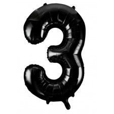 Palloncino Foil Numero 3, Tre,Nero, 86 cm