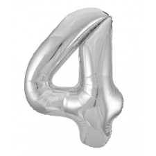 Palloncino Foil Numero 4, Quattro,Argento, 86 cm