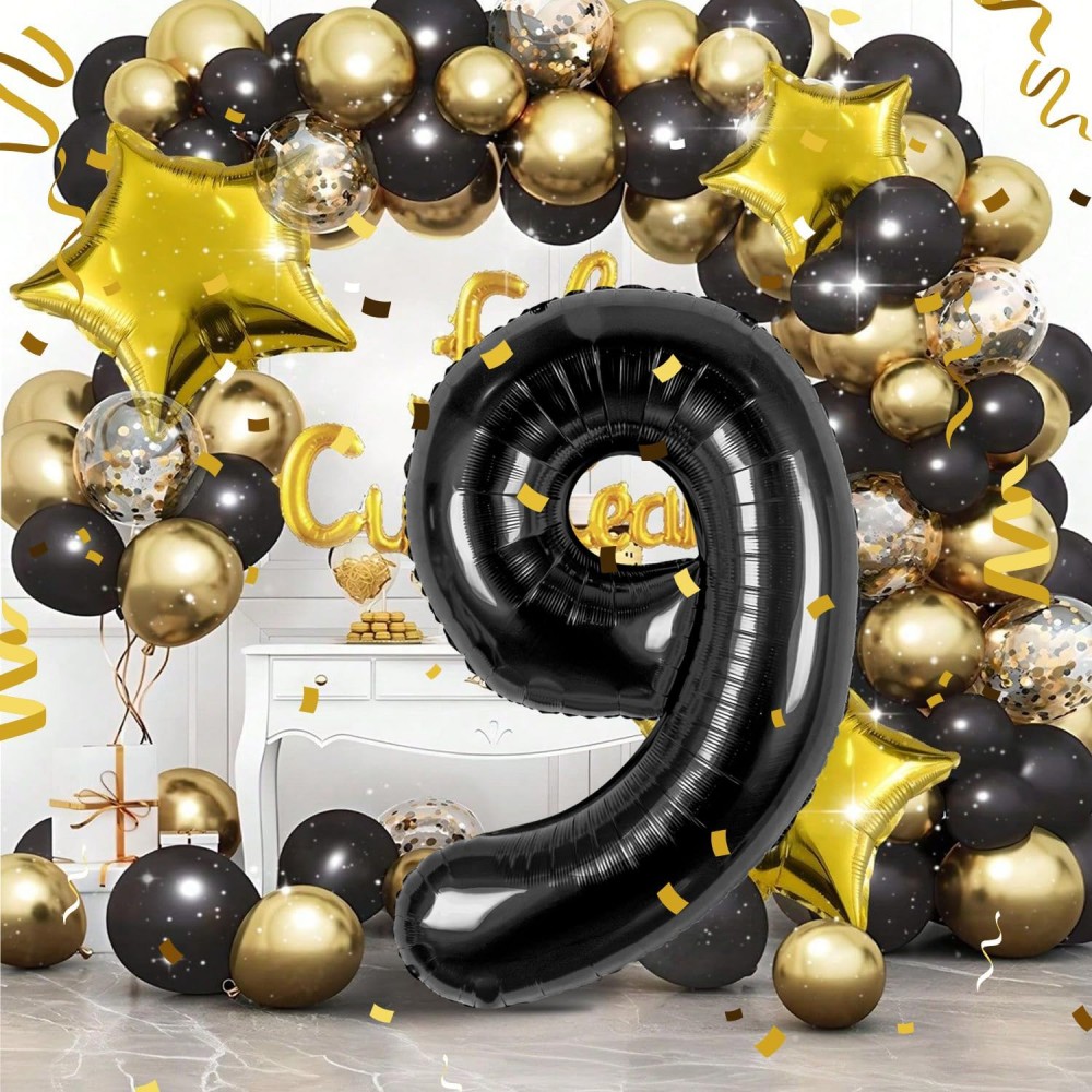 Palloncino Foil Numero 4, Quattro,Nero, 86 cm