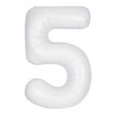Palloncino Foil Numero 5, Cinque,Bianco, 86 cm