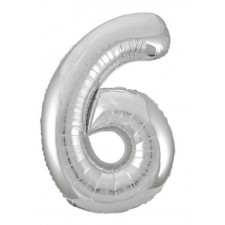 Palloncino Foil Numero 6, Sei,Argento, 86 cm