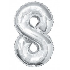Palloncino Foil Numero 8, Otto,Argento, 86 cm