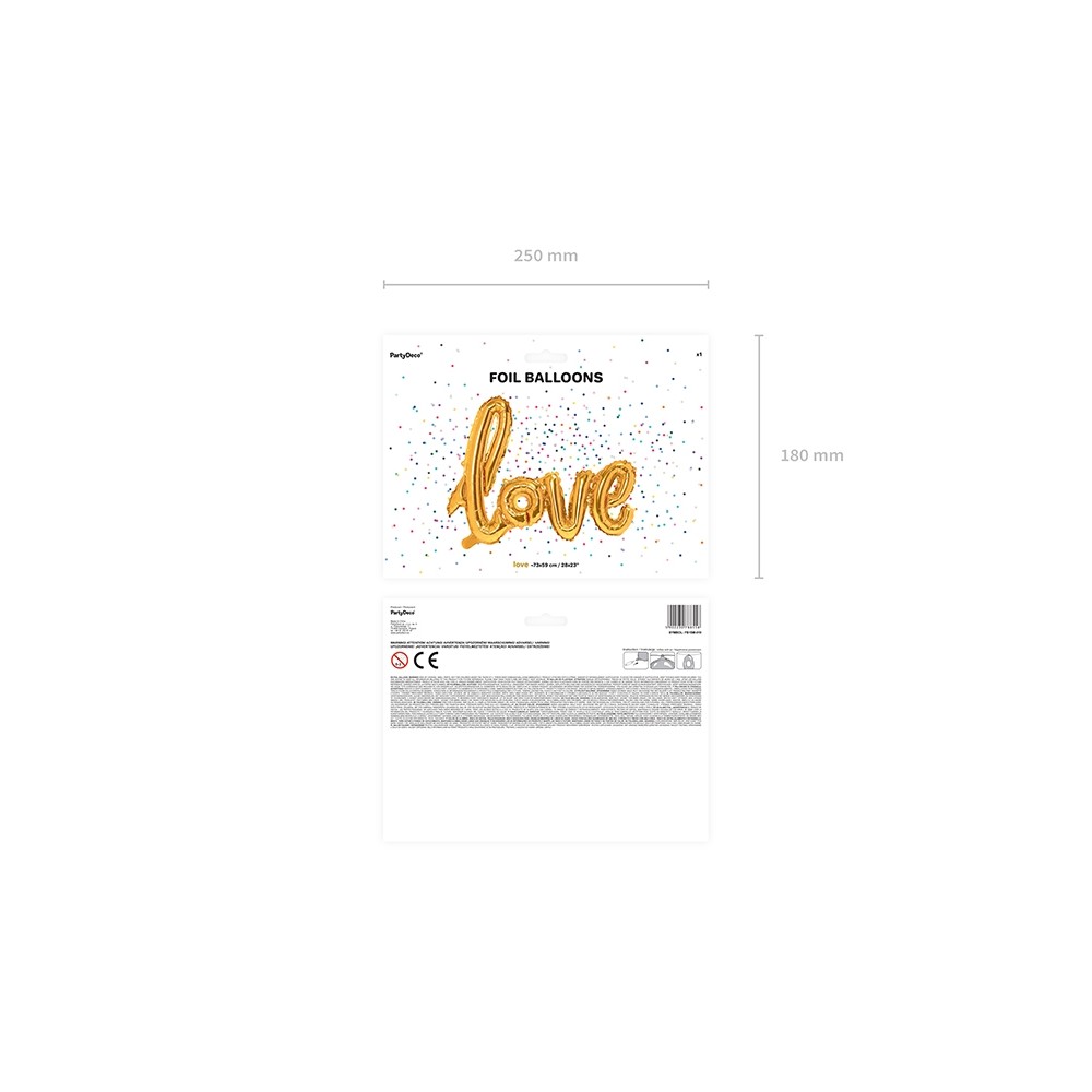 Palloncino Scritta gonfiabile "love" Oro Dorata, foil mylarmisura 73 x 59 cm
