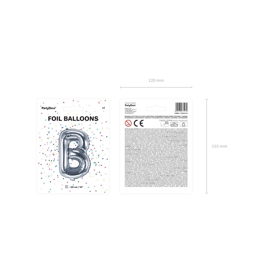 Palloncino Mylar a Forma di Lettera B Argento Compleannomisura 35 cm
