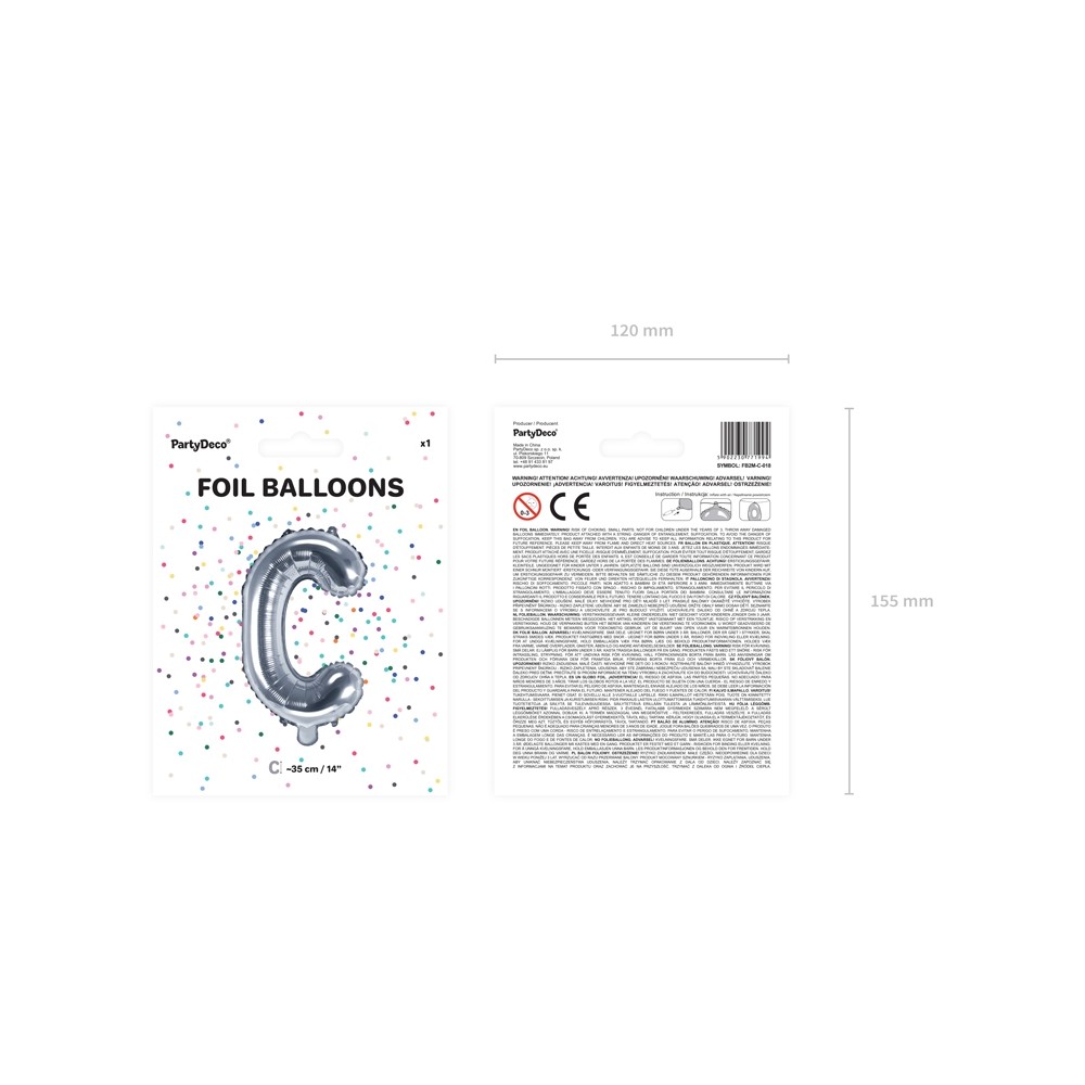 Palloncino Mylar a Forma di Lettera C Argento Compleannomisura 35 cm