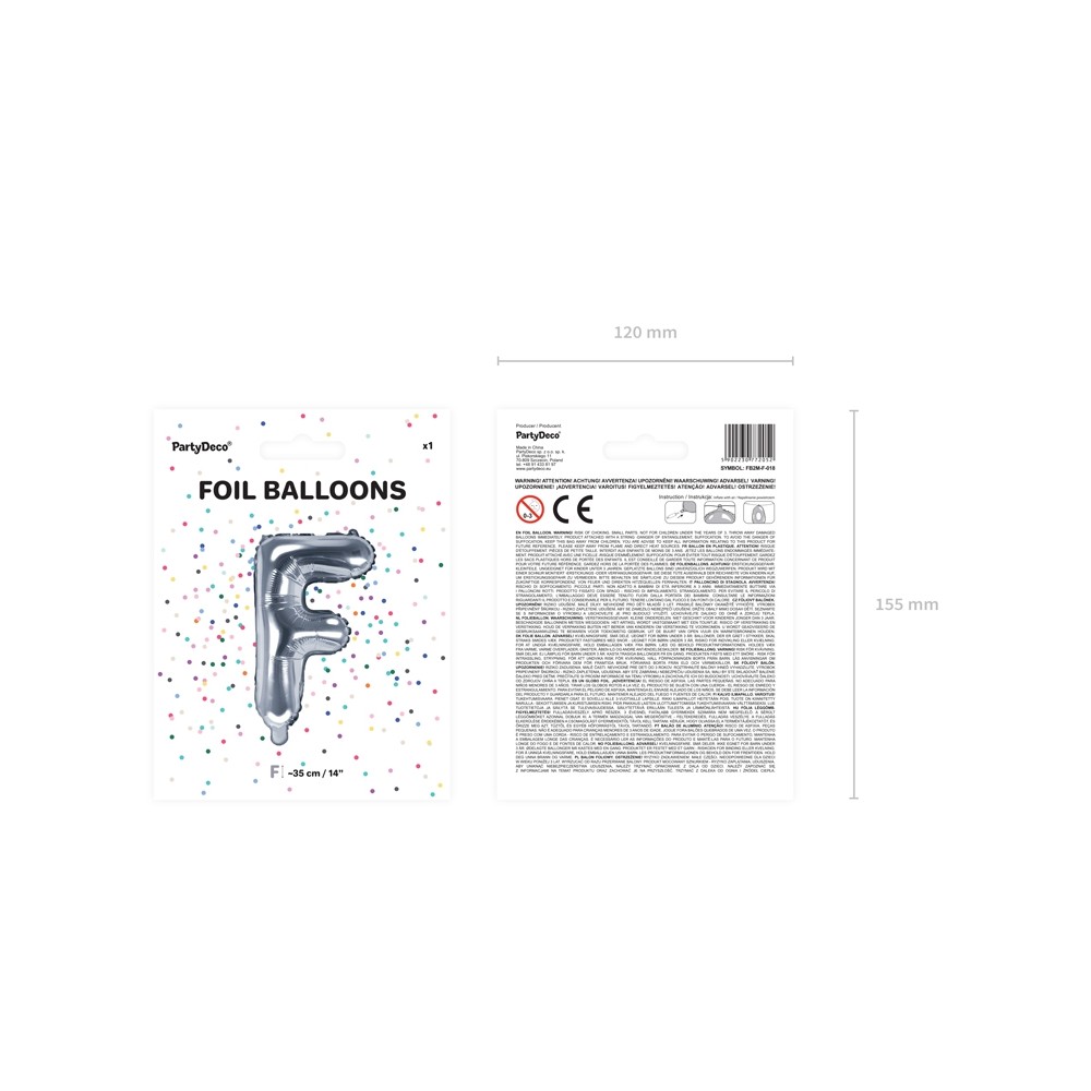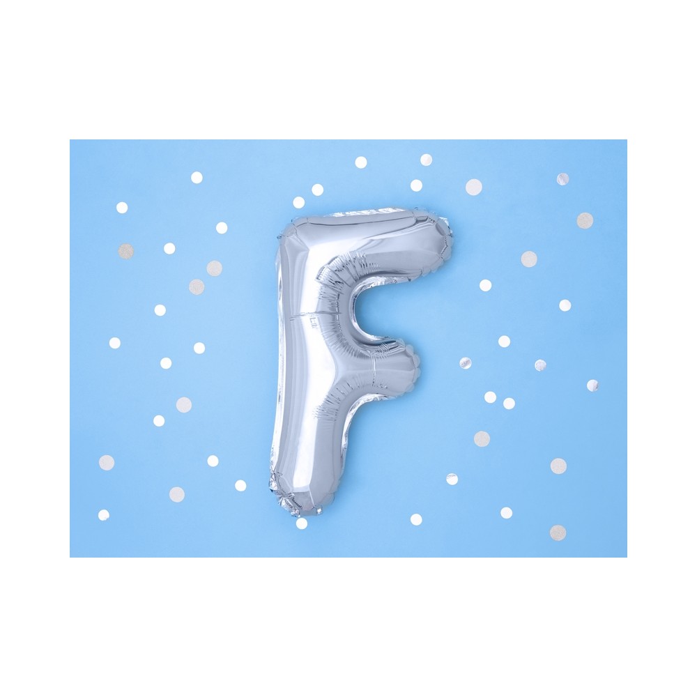 Palloncino Mylar a Forma di Lettera F Argento Compleannomisura 35 cm