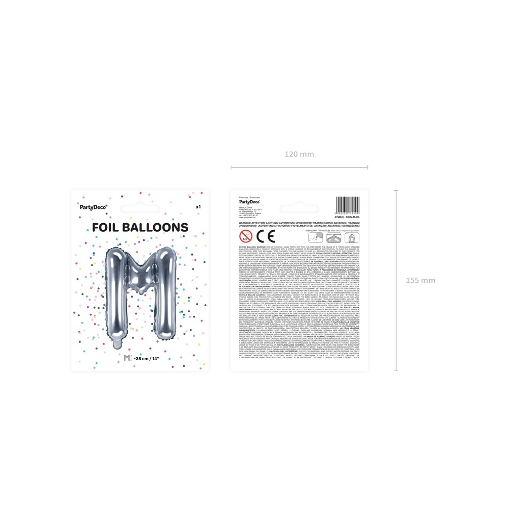 Palloncino Mylar a Forma di Lettera M Argento Compleannomisura 35 cm