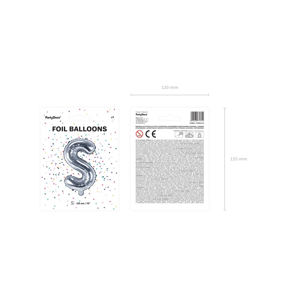 Palloncino Mylar a Forma di Lettera S Argento Compleannomisura 35 cm