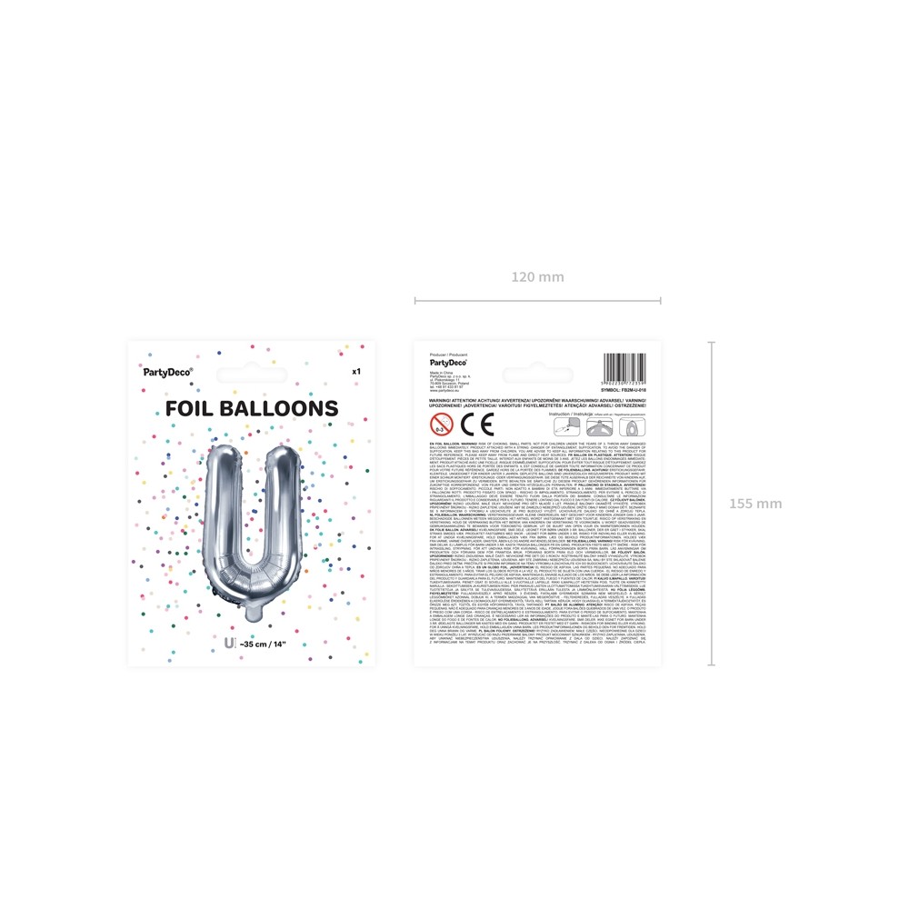 Palloncino Mylar a Forma di Lettera U Argento Compleannomisura 35 cm