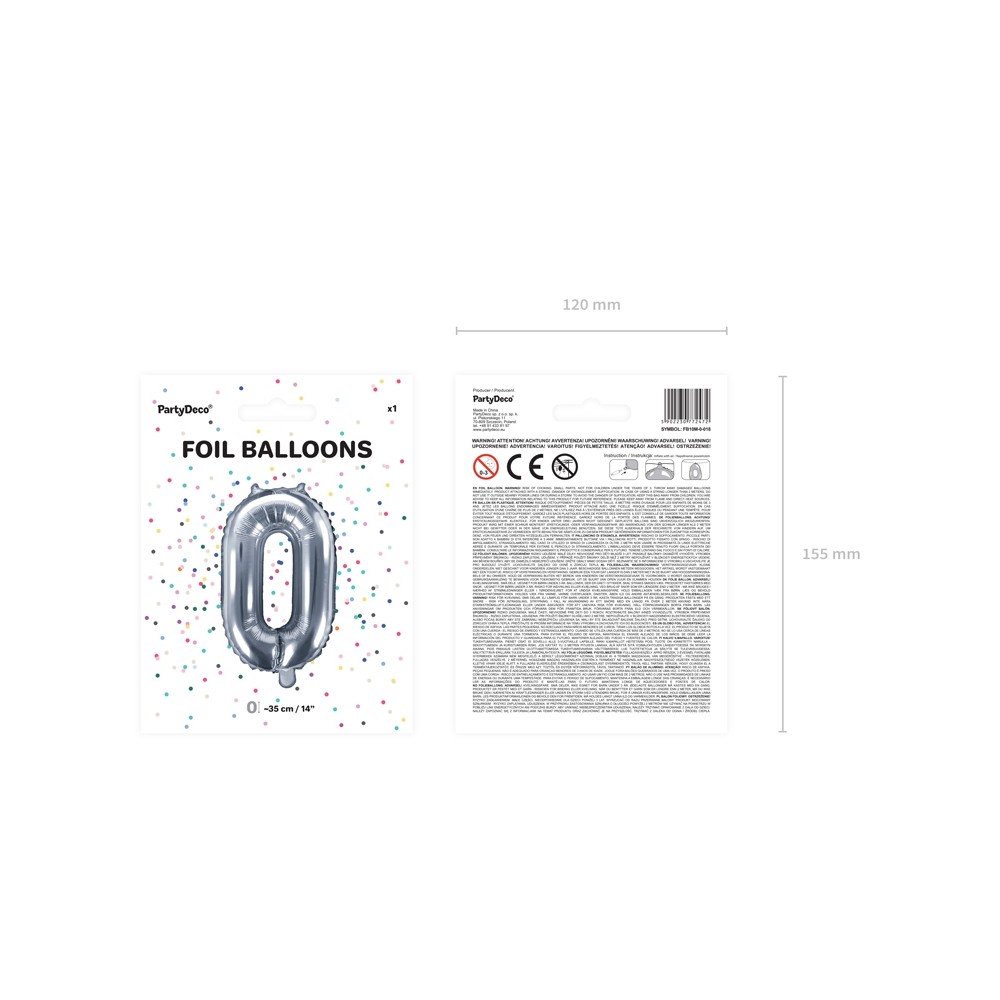 Palloncino Mylar a Forma di Numero 0 Zero Argento 35 cm