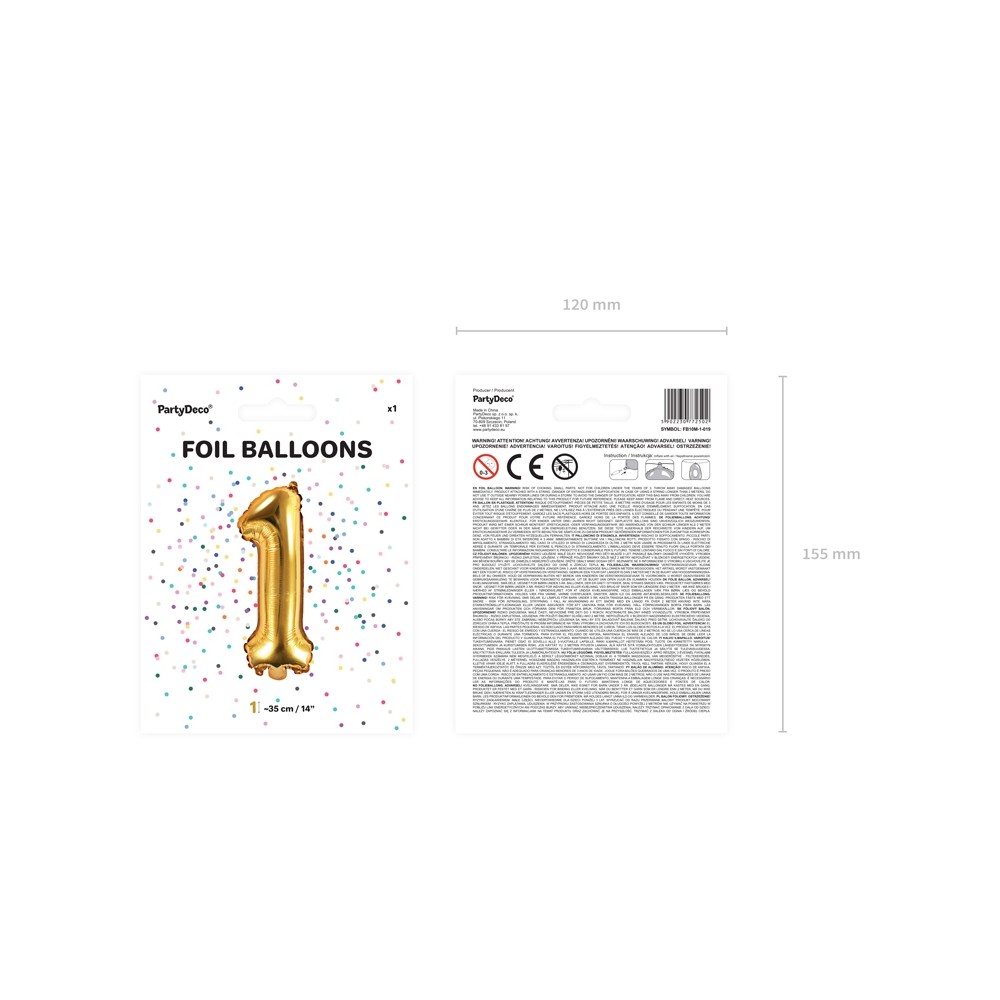 Palloncino Mylar a Forma di Numero 1 Uno Oro 35 cm