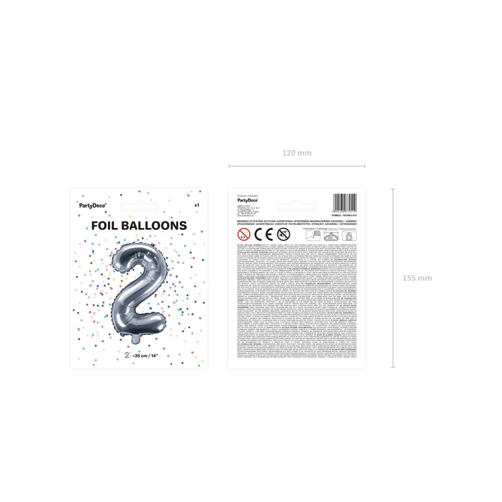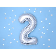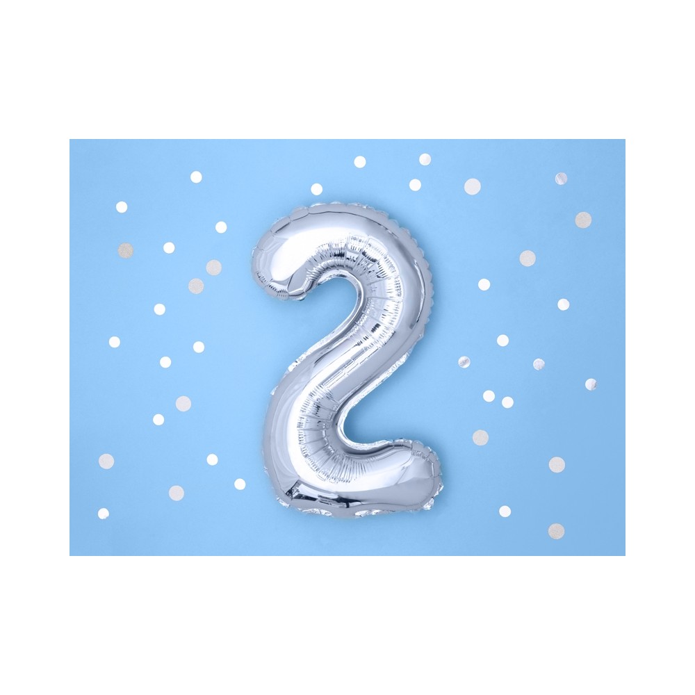 Palloncino Mylar a Forma di Numero 2 Due Argento 35 cm