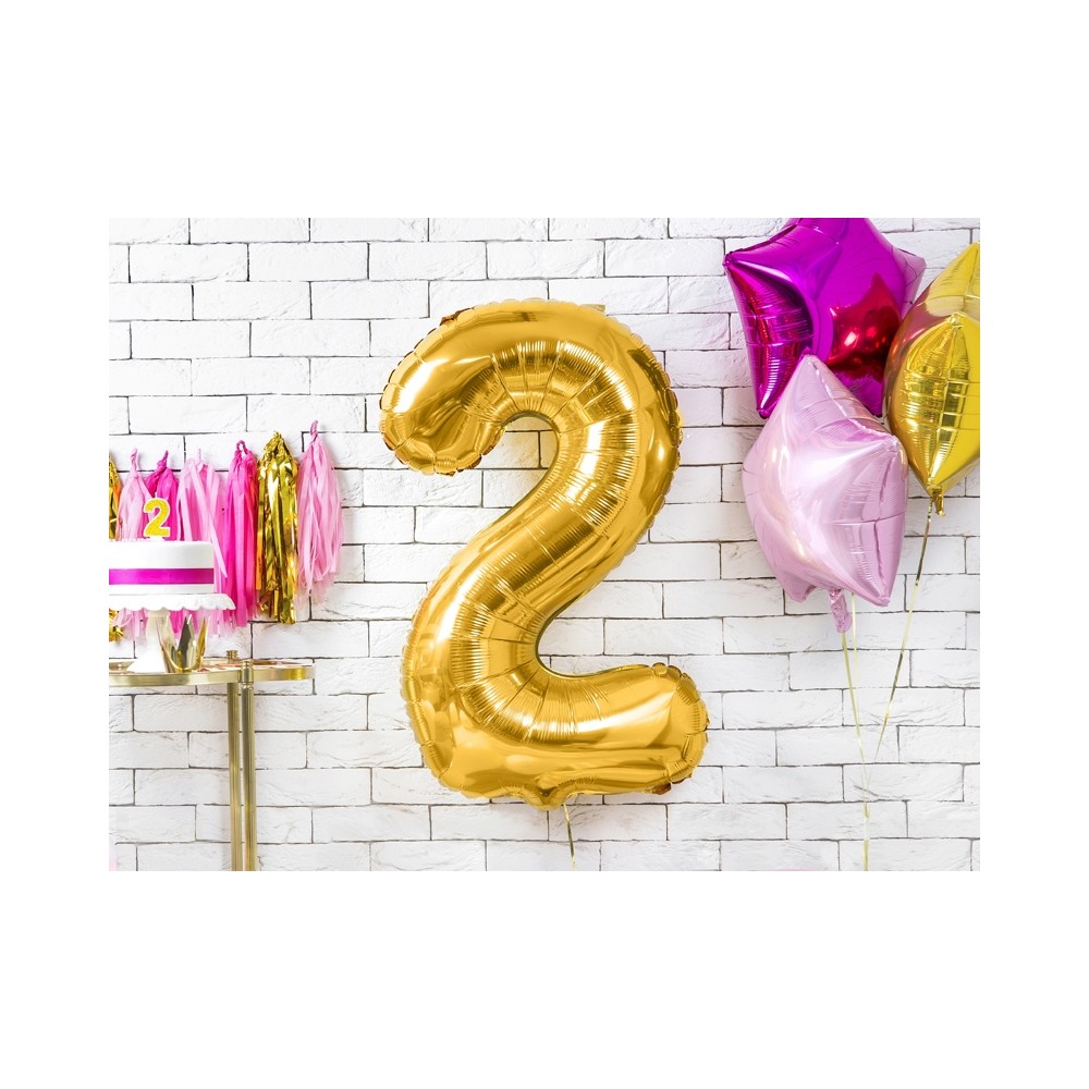 Palloncino Mylar a Forma di Numero 2 Due Oro 86 cm