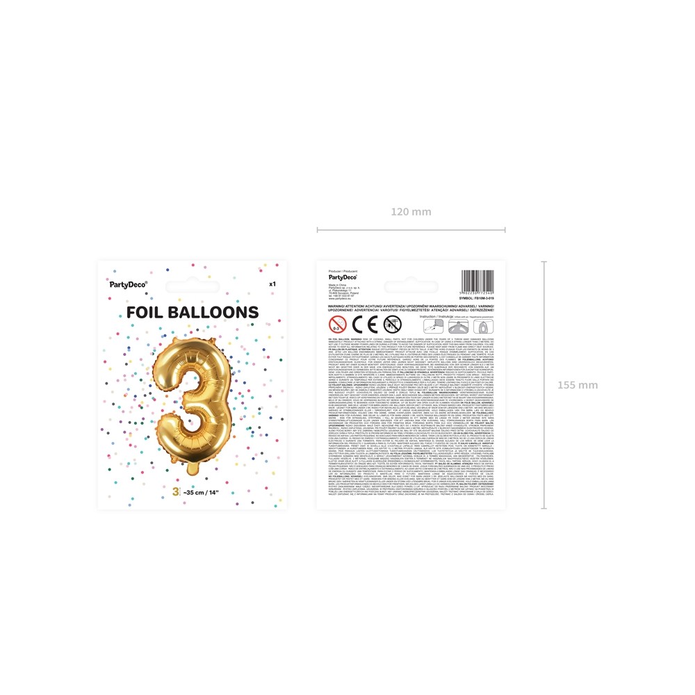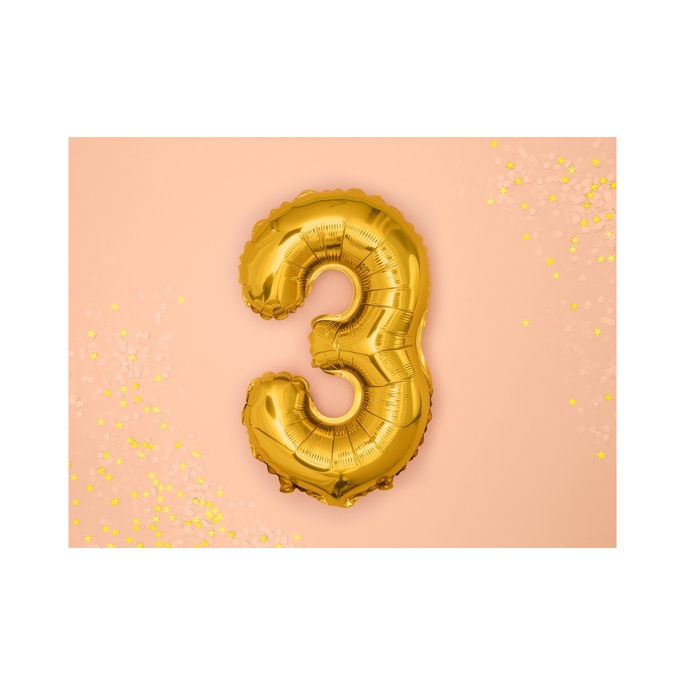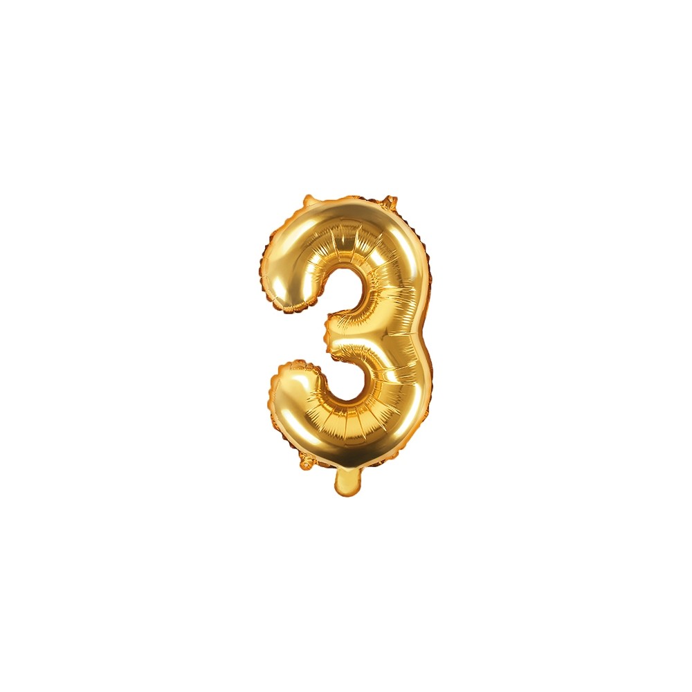 Palloncino Mylar a Forma di Numero 3 Tre Oro 35 cm Compleanno