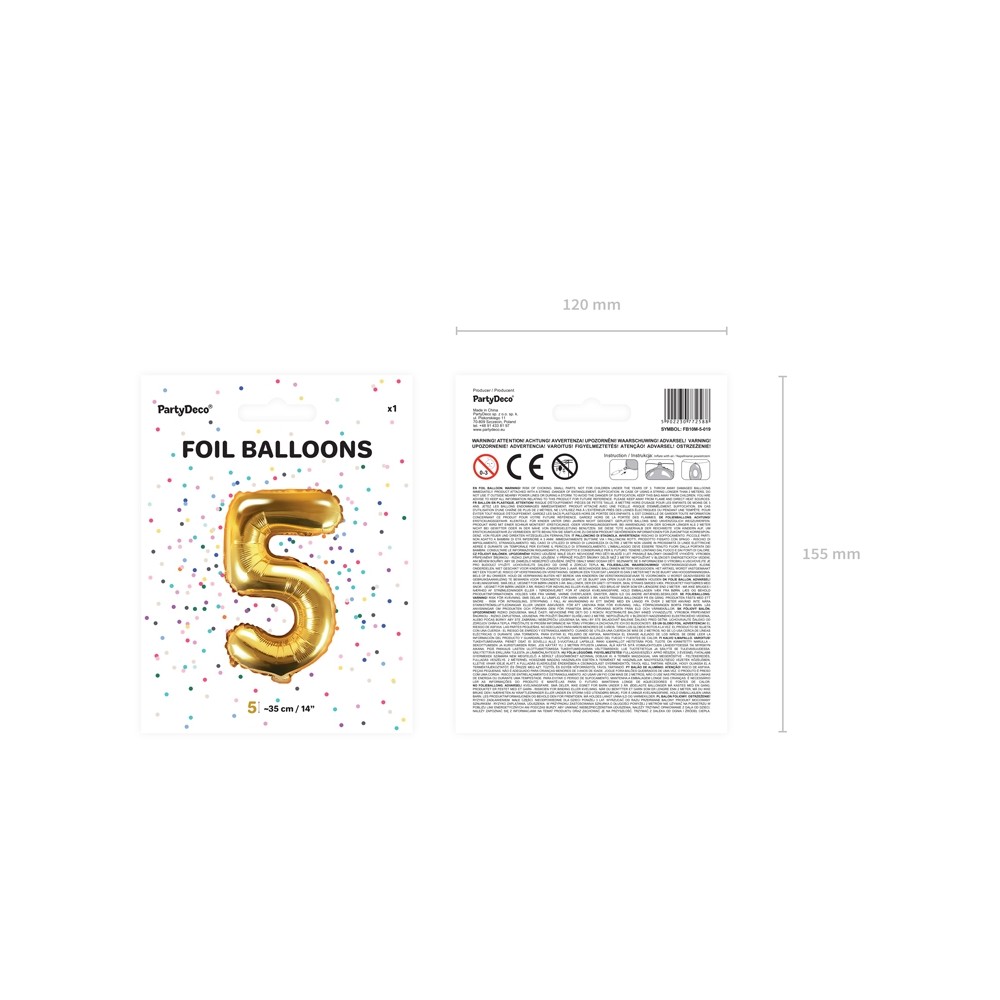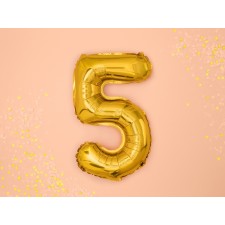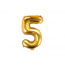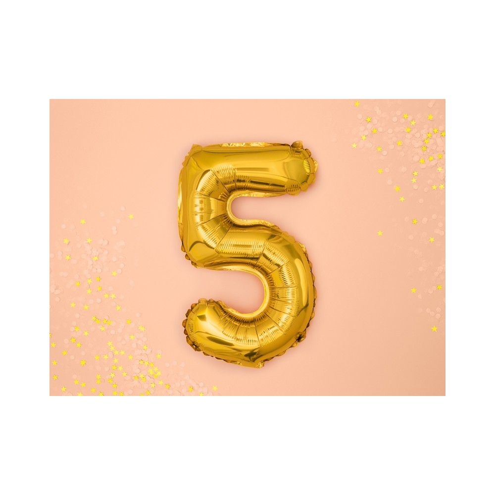 Palloncino Mylar a Forma di Numero 5 Cinque Oro 35 cm