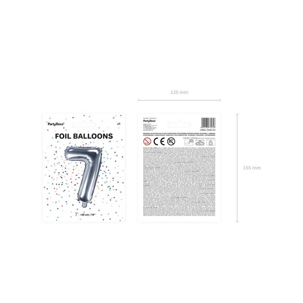 Palloncino Mylar a Forma di Numero 7 Sette Argento 35 cm