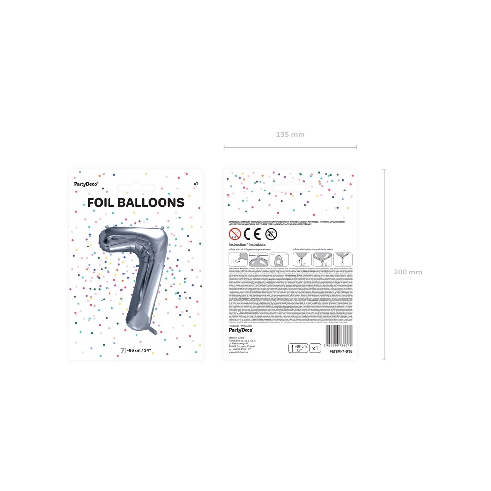 Usalo insieme agli altri numeri in mylar per comporre l'età del festeggiato o la data dell'evento speciale, rendi unica la tua festa! Vista la forma, sagomata a numero "7" sarà perfetto per l'assemblaggio con un altro palloncino dello stesso stile in occasione di un 7° Compleanno.
