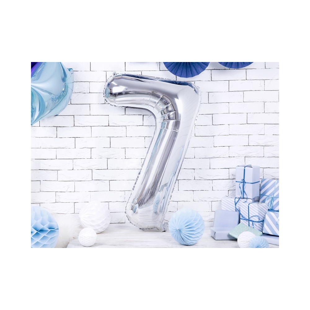 Palloncino Mylar a Forma di Numero 7 Sette Argento 86 cm