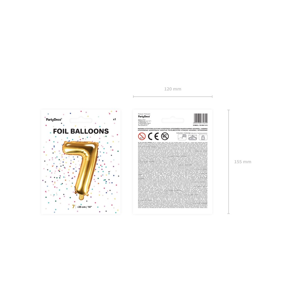 Palloncino Mylar a Forma di Numero 7 Sette Oro 35 cm