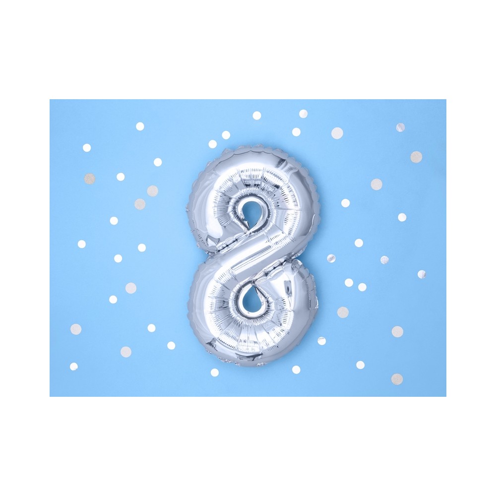 Palloncino Mylar a Forma di Numero 8 Otto Argento 86 cm