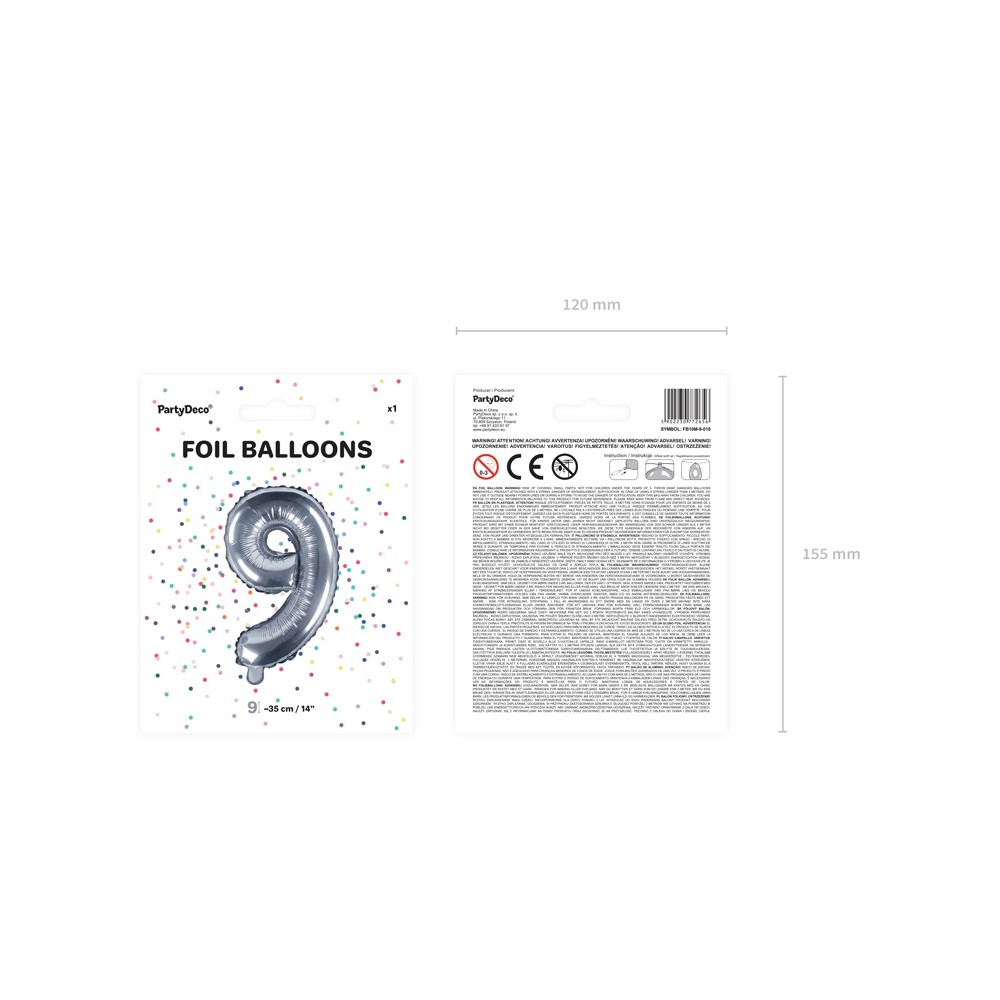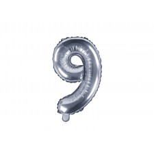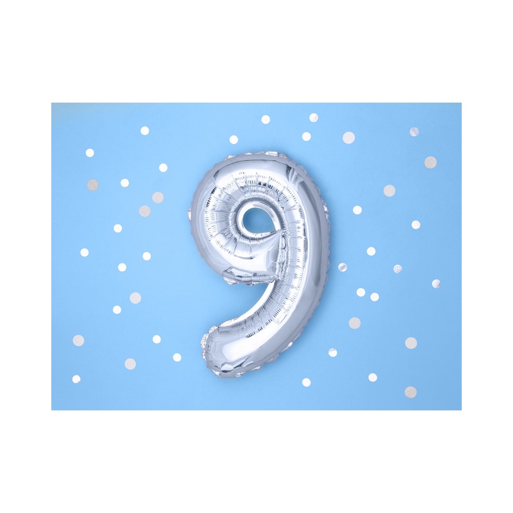 Palloncino Mylar a Forma di Numero 9 Nove Argento 35 cm