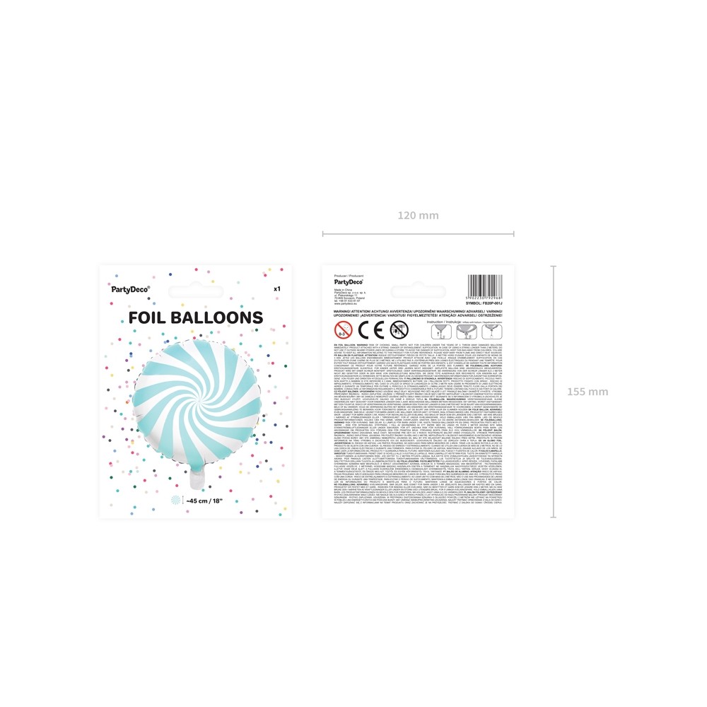 Palloncino Mylar Foil, caramella, Lecca Lecca Bianco e Azzurromisura 45 cm
